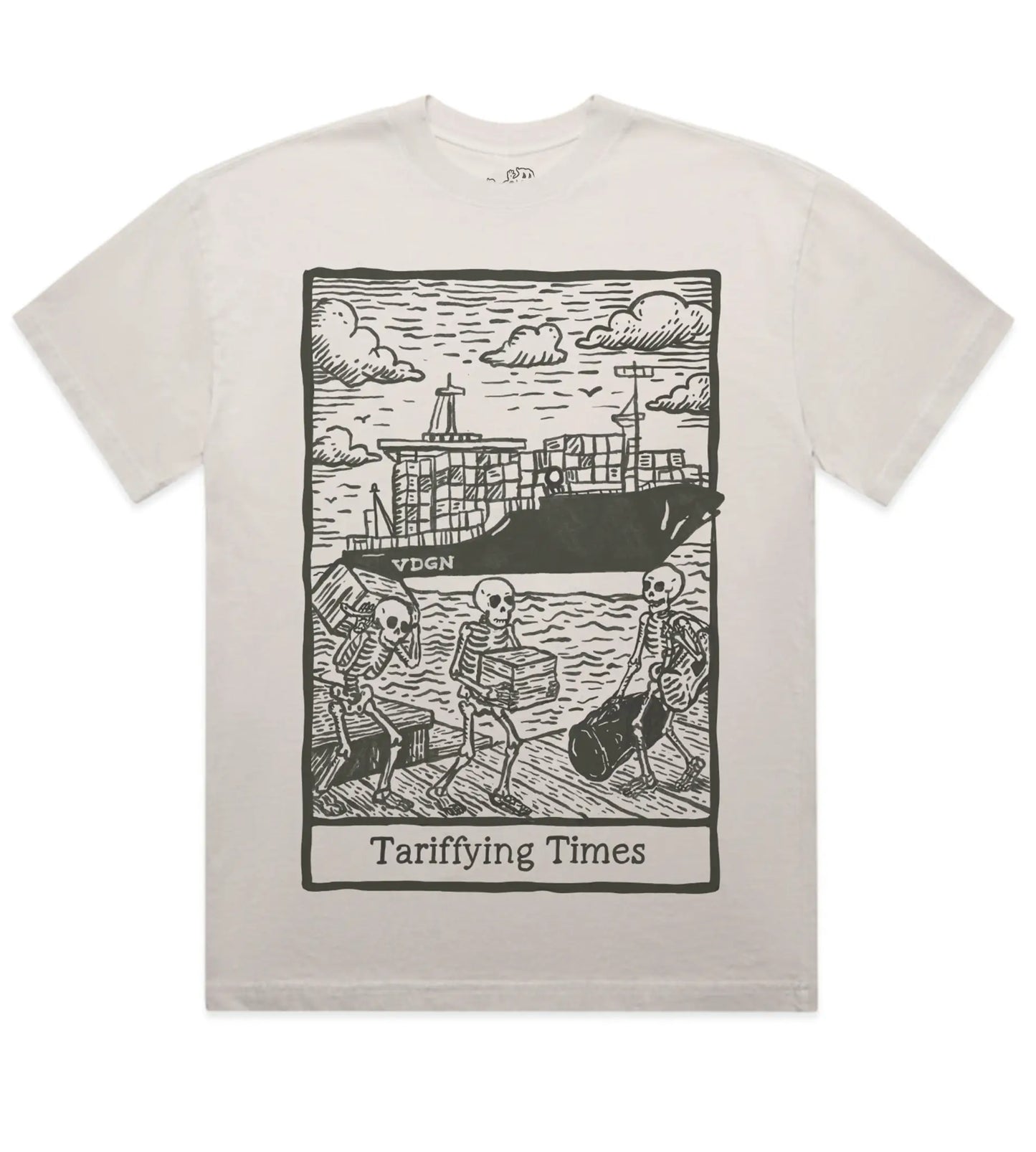 Our latest design throws it back to Pterrifying Times, but trades in prehistoric panic for present-day port problems. The scene? A familiar dock, unpredictable tides, and a world still trying to figure out what it’s doing.