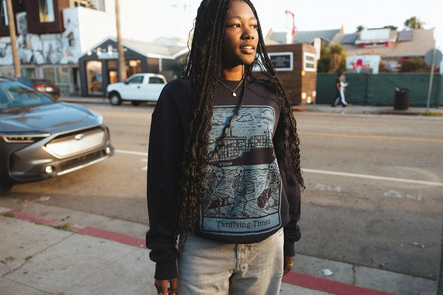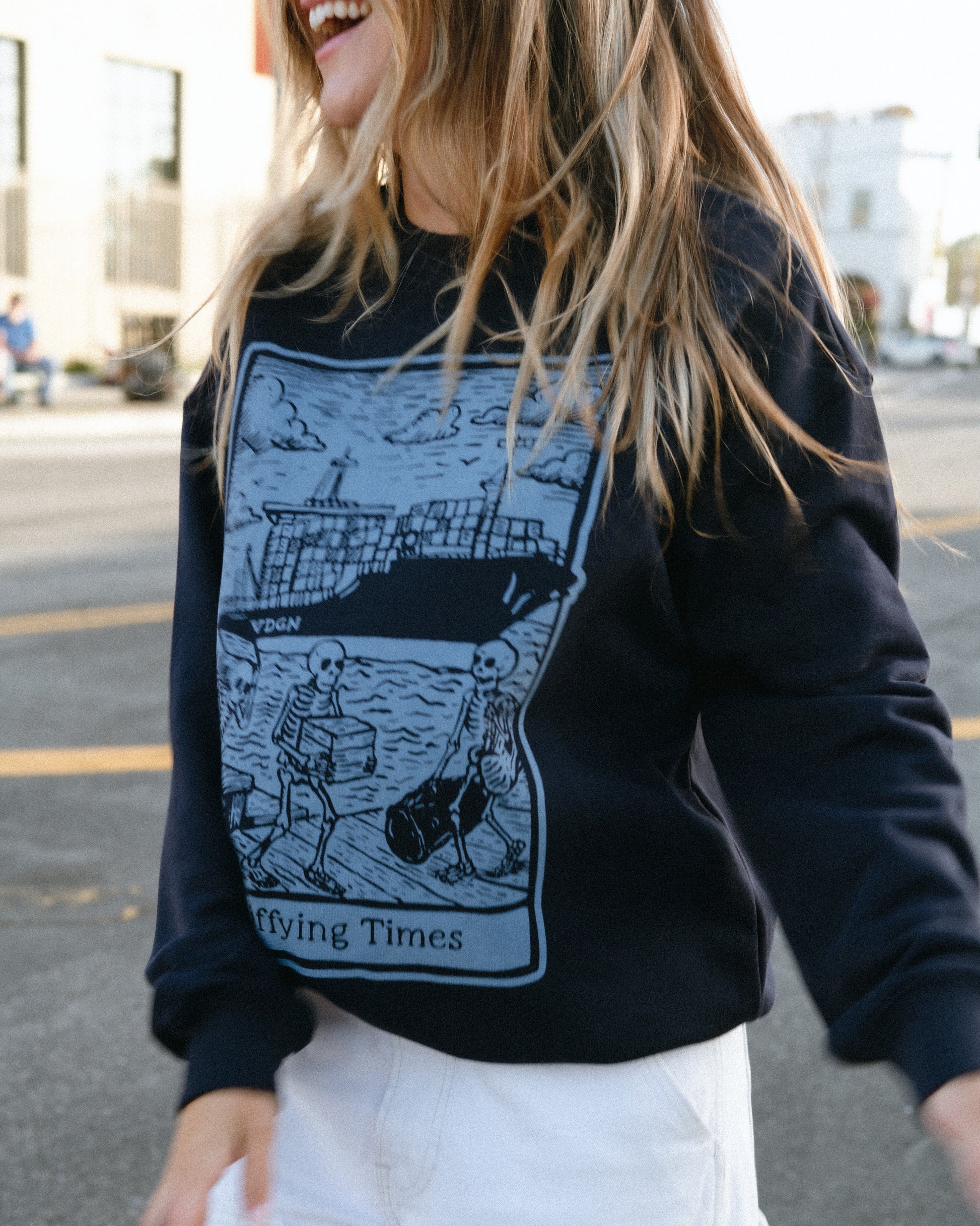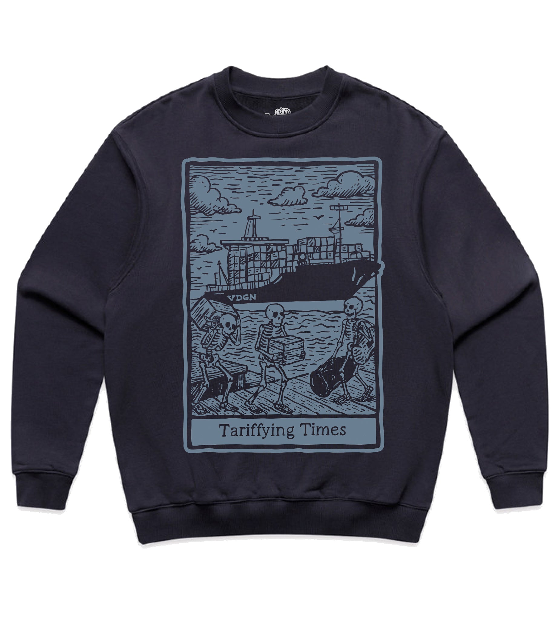 Our latest design throws it back to Pterrifying Times, but trades in prehistoric panic for present-day port problems. The scene? A familiar dock, unpredictable tides, and a world still trying to figure out what it’s doing.
